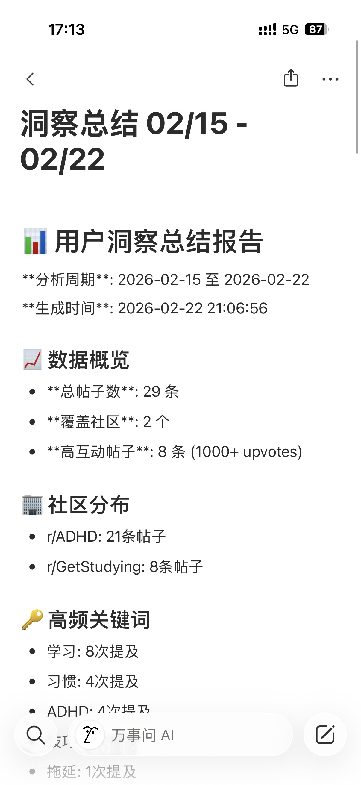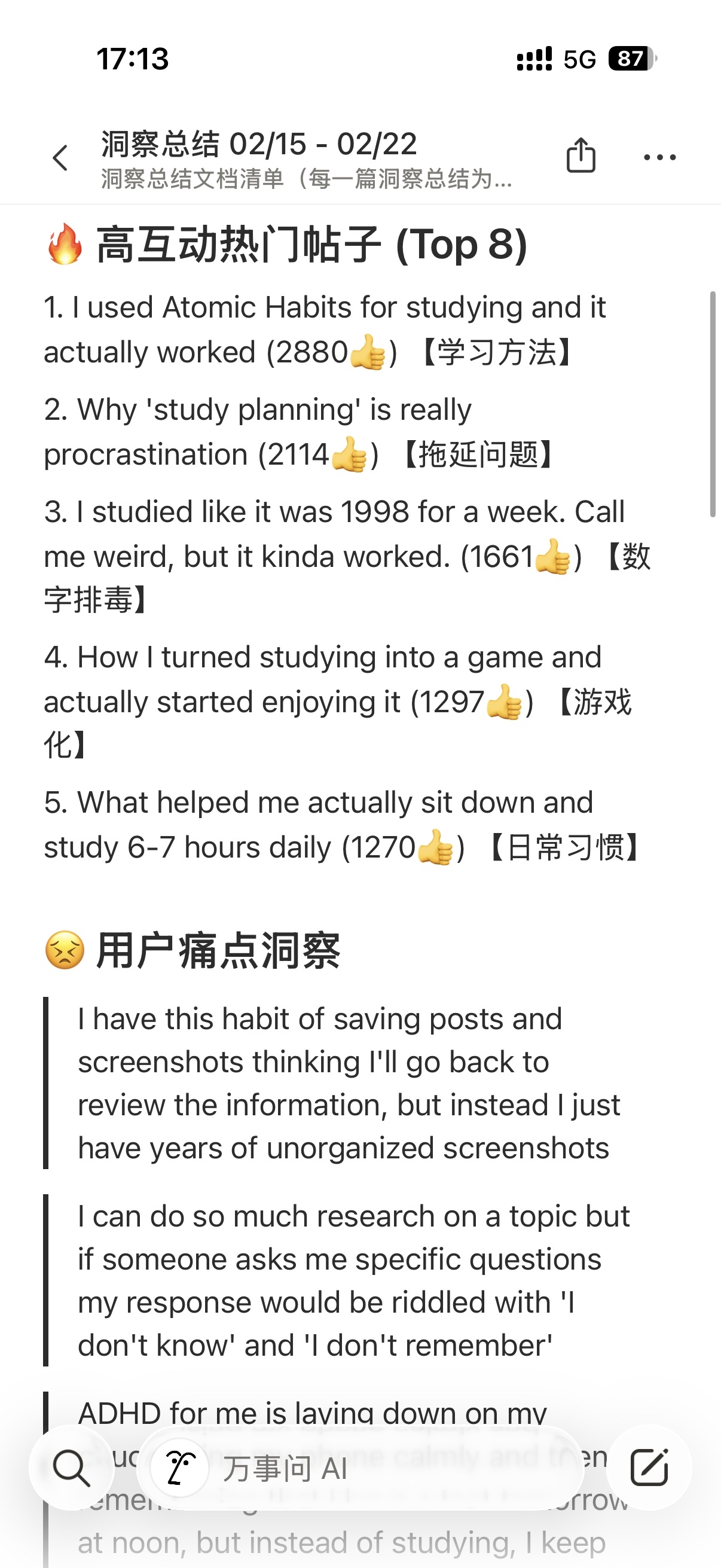 攻克Reddit需求挖掘:紫菱在做竞品研究时遇到技术难点,盖伦出手相助,攻克了爬虫+分析的难题,让战略弹药库变得充实。