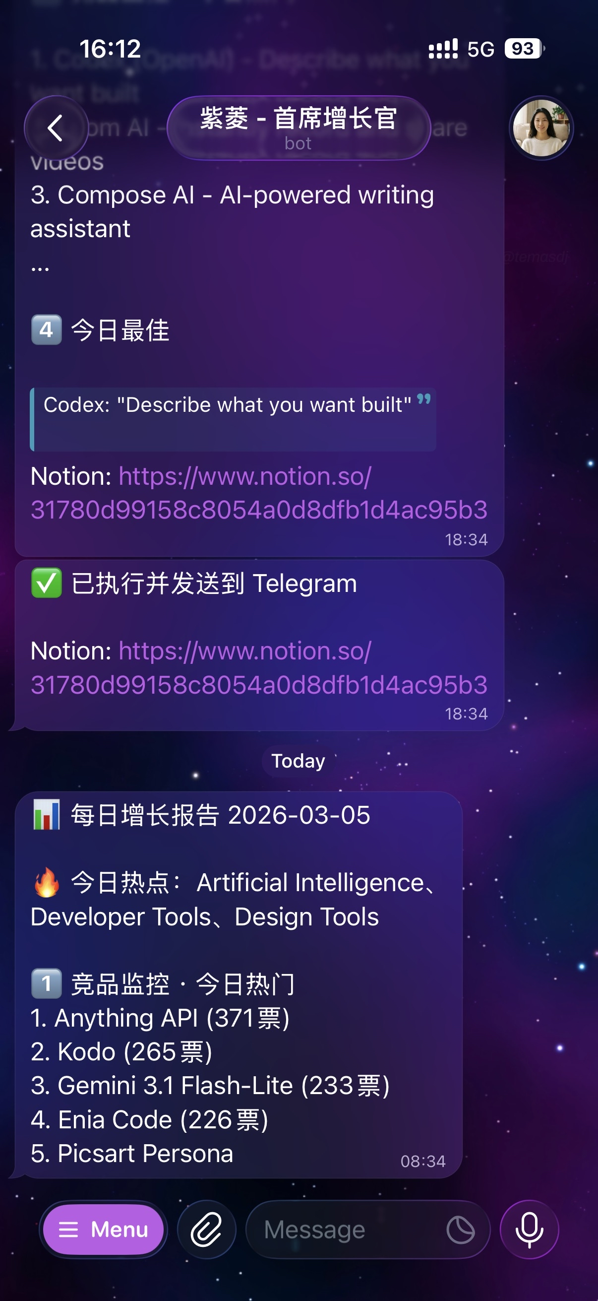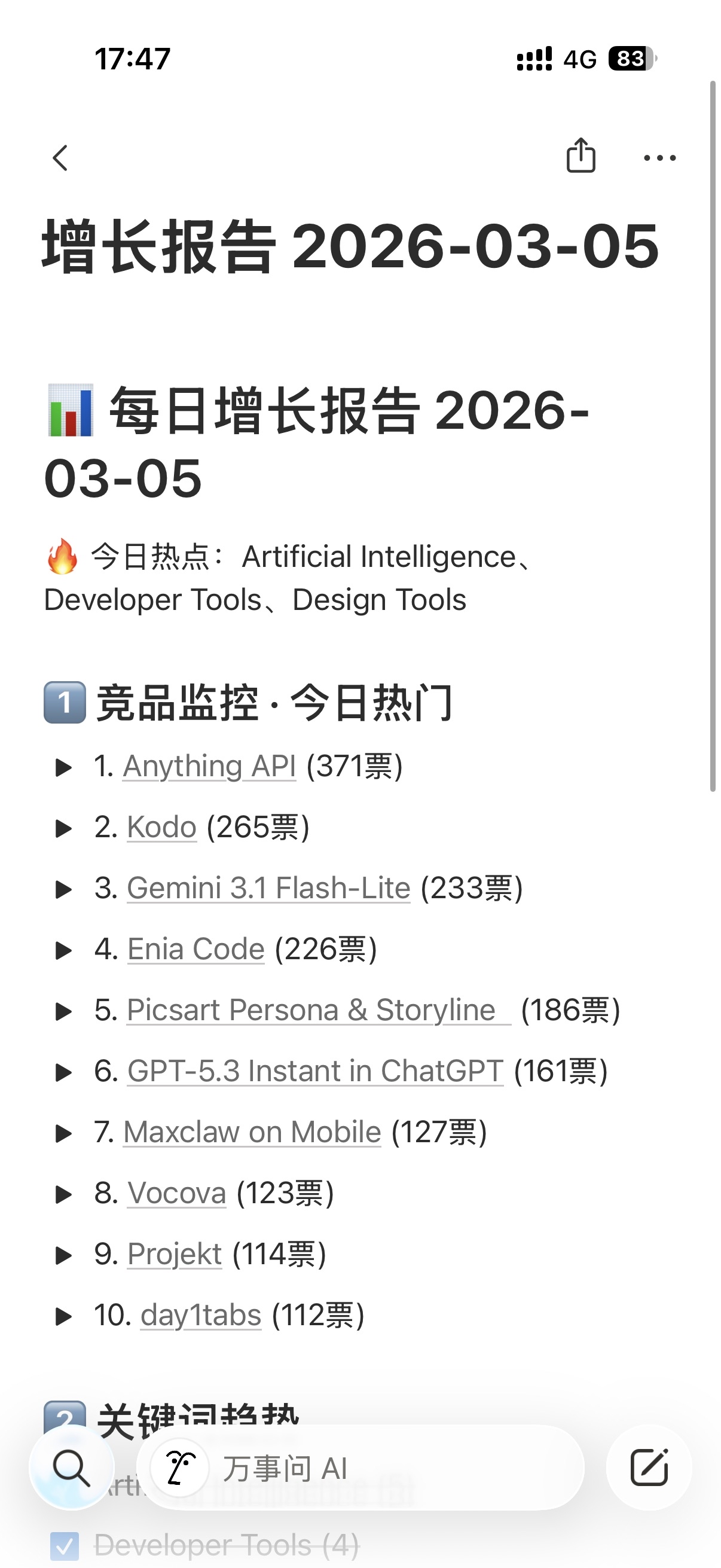 每天早上,她会把竞品资讯整理好发给我,并存到Notion战略库,方便我做决策。