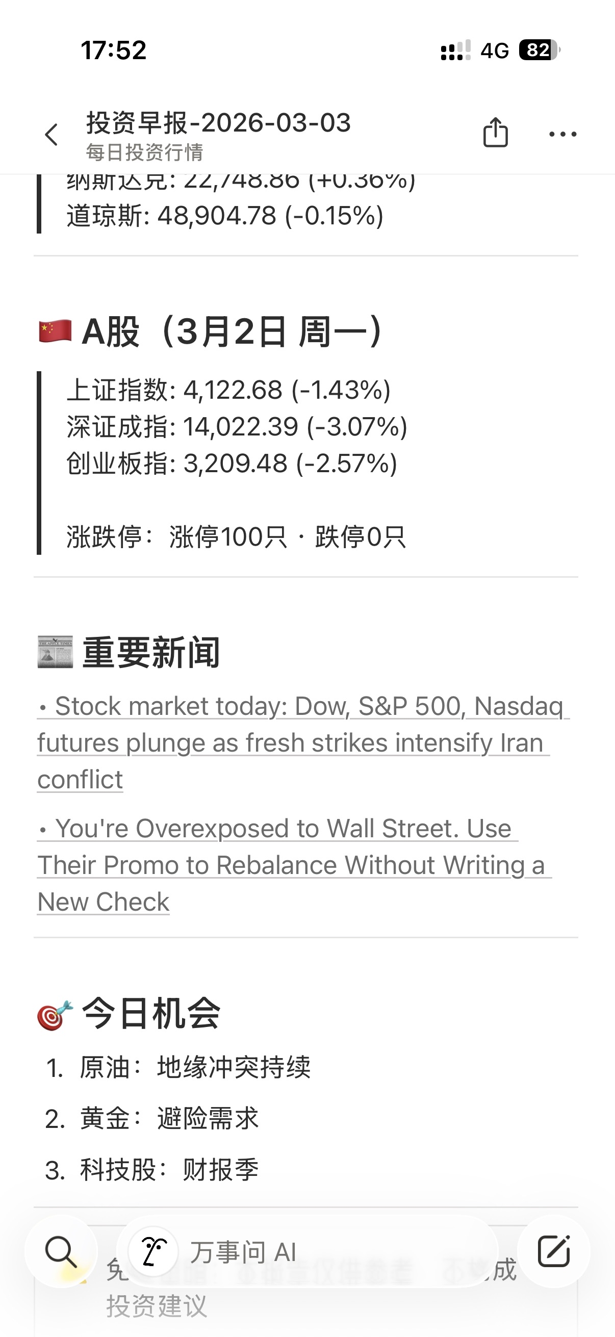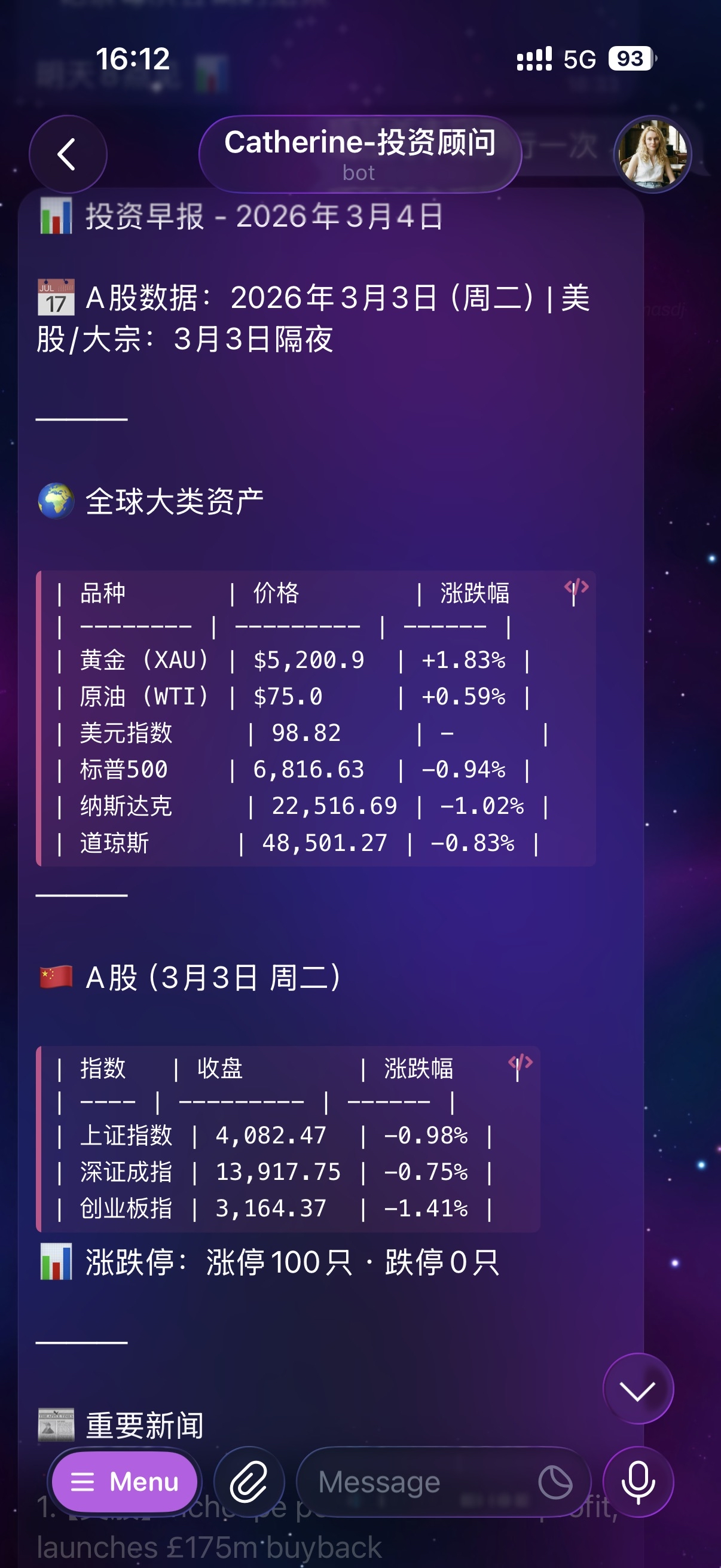 每天早上,Catherine会准时把市场表现数据发给我,并同步到Notion数据库。