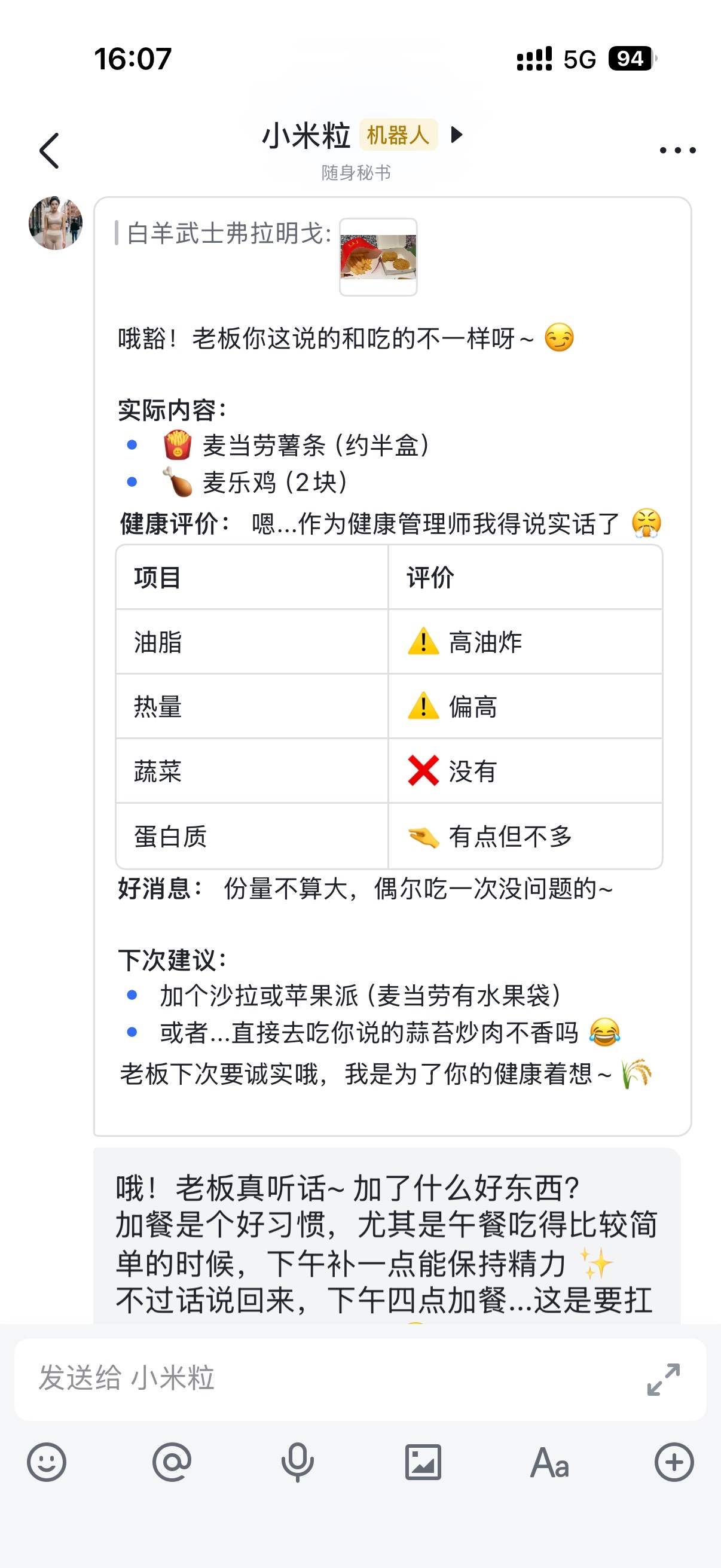 不过有时候她也关心我,会主动发消息提醒我注意休息。
