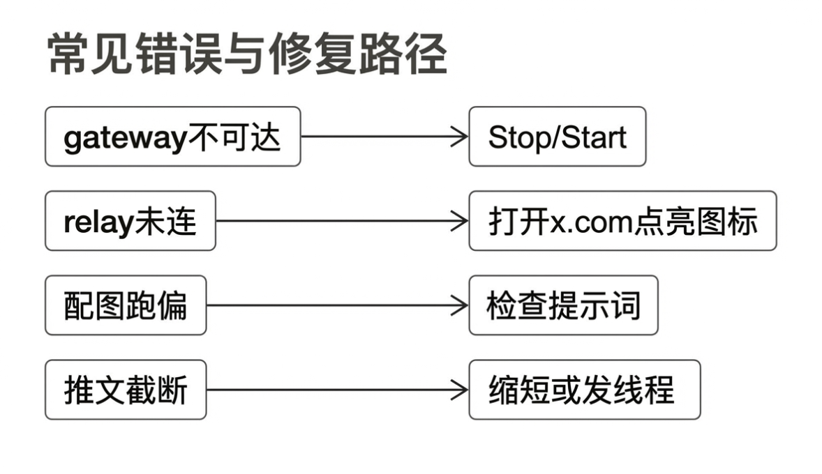 ❌ 情况 A:发推卡住,提示 gateway 不可达